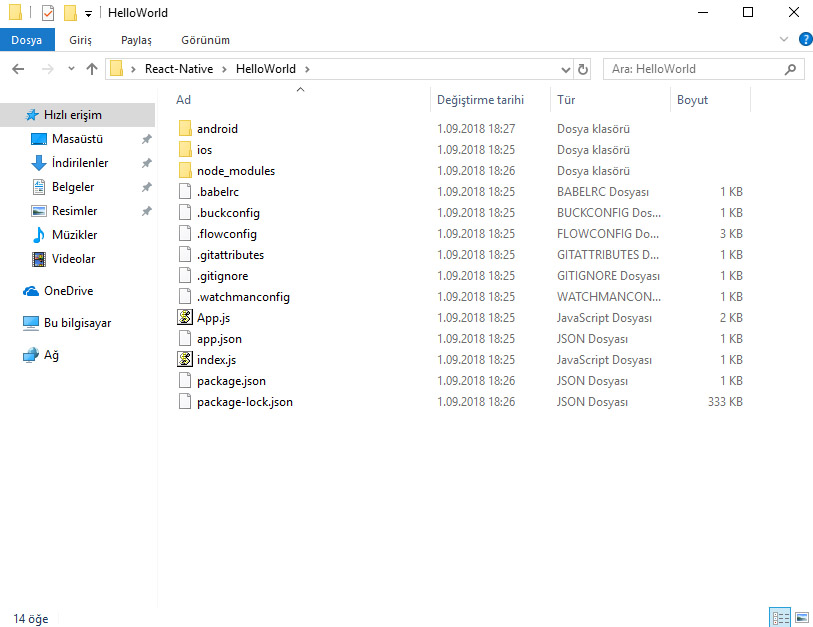 ardından belirtiğimiz dizinde aşağıdaki gibi projemizi oluşturacaktır.